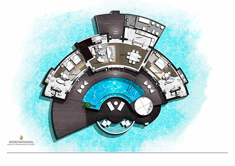 Perfect for couples traveling together or families with older children, these 2 west-facing Maldives family villas feature two separate bedrooms with one king bed and one sofa bed, two bathrooms, outdoor shower, spacious living area with pantry and powder room, two sundecks and a private infinity pool overlooking the beach. Club InterContinental Benefits: o Complimentary daily breakfast o Complimentary daily afternoon tea served from 3.00 pm till 5.00 pm o Complimentary daily evening aperitif hours served from 5.00 pm till 7.00 pm o Complimentary selection of soft beverages and Maamunagau water from 11.00 am till 6.00 pm at the Retreat and Pool Bar o Complimentary poolside and beach refreshments daily
