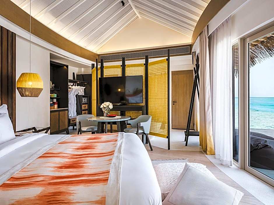 Take in sweeping views of the blue ocean, these Maldives two-bedroom water villas open up to an expansive outdoor deck to soak up the sun and steps that lead directly into the sea; perfect for couples or friends traveling together.